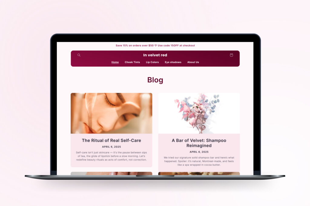 Création complète de la boutique Shopify pour « In Velvet Red »
